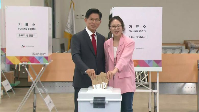 지금 투표함에 같이 투표한 투표용지를 보내고 있는데 아무래도 같이 사진을 찍고 있는 모습을 보니까 따님인 것으로 보이는데 저 부분은 조금 더 정확하게 확인한 뒤에 다시 한 번 말씀을 드리겠습니다.