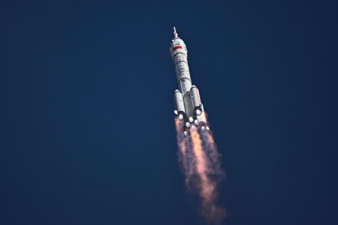 24일(현지시간) 중국 간쑤성의 주취안 위성발사센터에서 창정-2F 로켓에 실린 유인 우주선 선저우 20호가 우주 정거장 '톈궁'을 향해 성공적으로 발사되고 있다. 2025.04.25 /AFPBBNews=뉴스1 |