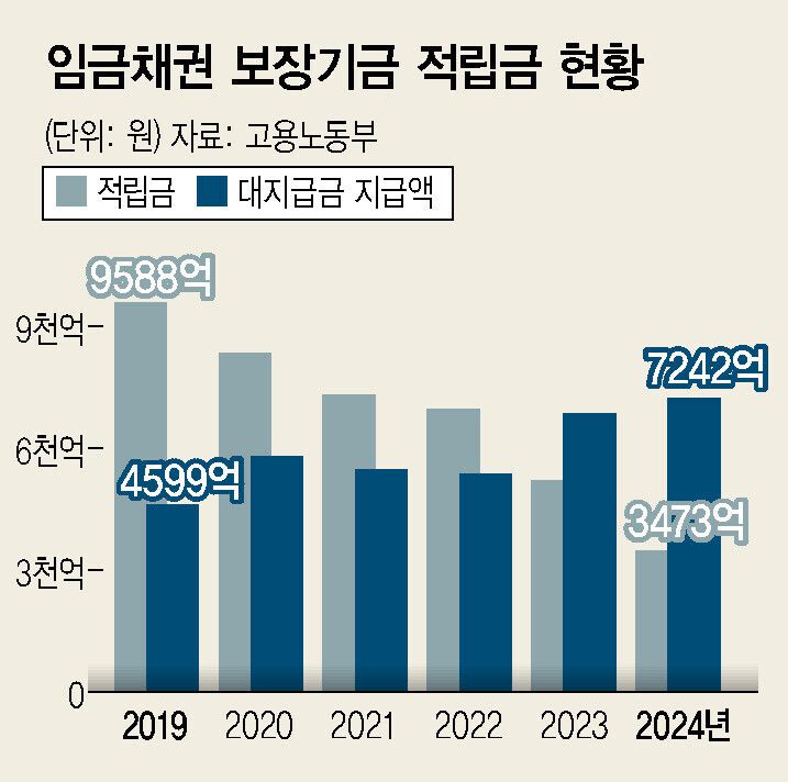대지급금이 임금체불 피해노동자의 신속한 구제에 도움이 되는 것은 확실하다. 그러나 후보들의 공약처럼 대지급금 지급 한도를 늘리려면 막대한 재원이 필요할 것으로 보인다. 지난해 임금체불 총액이 2조원이 넘어가는데, 이를 모두 대지급금으로 지급하기 위해선 임금채권보장기금이 최소 2조원은 넘겨야 한다. 그러나 임금체불 증가에 따라 2019년 4599억원원이었던 대지급금 지급액이 지난해 7242억원까지 증가하면서, 임금채권보장기금 적립액은 같은 기간 동안 9588억원에서 3473억원으로 급감한 상태다.