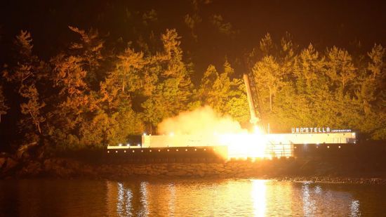 우나스텔라는 전남 고흥군 봉래면에 위치한 자체 발사장에서 28일 오후 11시 50분 길이 9.45m, 총 중량 2t에 추력 5t급 엔진을 탑재한 소형 발사체 '우나 익스프레스' 1호기를 시험 발사하는 데 성공했다. 우나스텔라 제공 |