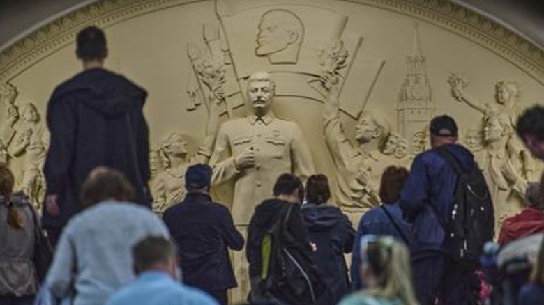 구소련의 독재자 이오시프 스탈린을 영웅적으로 묘사한 조각상이 러시아 모스크바 지하철역 한복판에 등장했습니다.