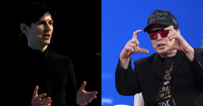 텔레그램 파벨 두로프 최고경영자(CEO)와 일론 머스크 테슬라 CEO. 로이터·AP연합뉴스 |