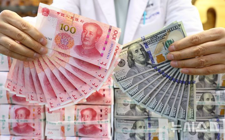 [서울=뉴시스] 황준선 기자 = 미국 트럼프 행정부가 반도체 설계용 소프트웨어와 항공기 부품 등 중국에 대한 핵심 기술 수출 통제를 강화한 것으로 알려졌다. 사진은 지난 13일 서울 중구 하나은행 위변조대응센터에서 직원이 달러화와 위안화를 정리하는 모습. 2025.05.29. hwang@newsis.com |
