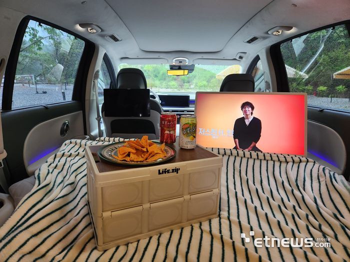 이제 집 밖으로도 나갈 수 있게 됐다. 차박이나 캠핑 등을 할 때 모빌리티 공간에서 LG 스탠바이미 2 화면부만 챙기면 된다. LG 스탠바이미 2를 현대자동차 대형 스포츠유틸리티차(SUV) '아이오닉9'에서 사용해봤다.