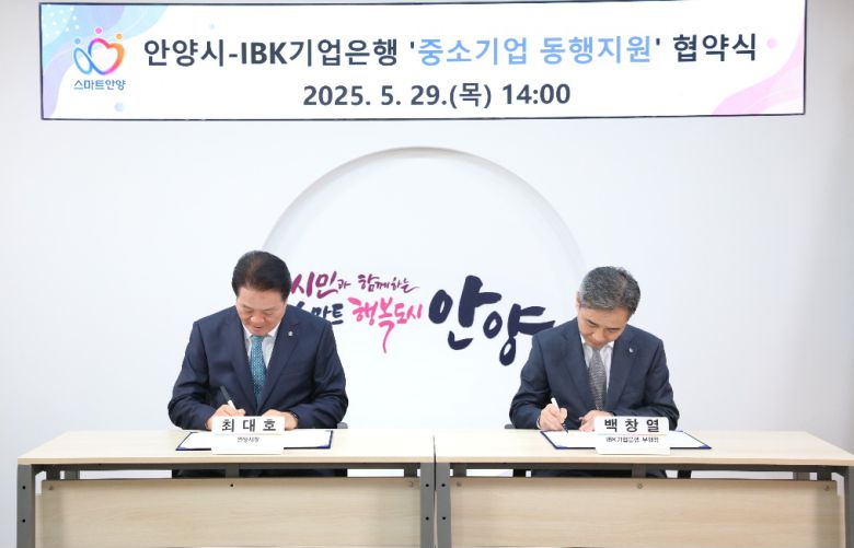 안양시와 IBK기업은행이 관내 중소기업에 대한 정책 자금 지원을 위해 '중소기업 동행지원'업무협약을 체결했다고 29일 밝혔다.