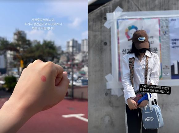 29일 이채연은 자신의 인스타스토리에 센스 넘치는 사전투표 인증샷을 올렸다.