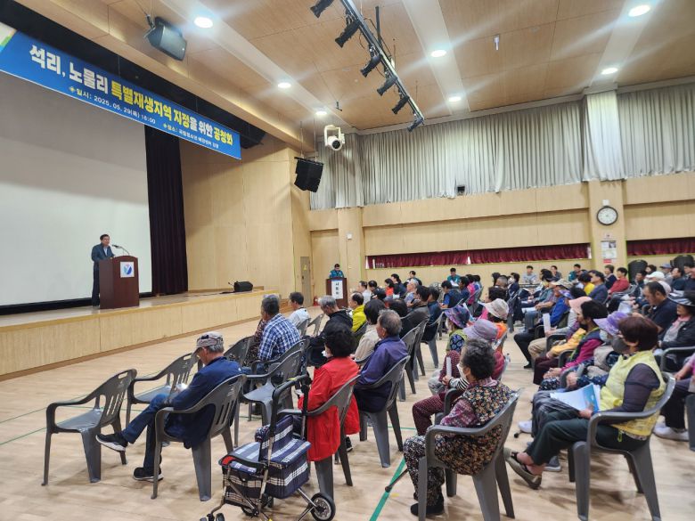 (영덕=국제뉴스) 김충남 기자 = 영덕군은 영덕읍 석리와 노물리 마을의 특별재생지역 지정을 발표하고, 관련 전문가와 주민들의 의견을 수렴하는 공청회를 5월 29일 영덕 국립청소년해양센터에서 가졌다.