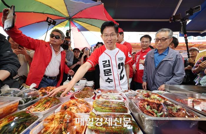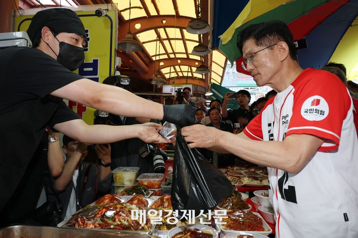 김문수 국민의힘 대선 후보가 29일 인천 남동구 모래내전통시장을 방문해 반찬을 구입하고 있다. 2025.5.29 [한주형기자] [ⓒ 매일경제 & mk.co.kr, 무단 전재, 재배포 및 AI학습 이용 금지]이 기사의 카테고리는 언론사의 분류를 따릅니다.0공유하기