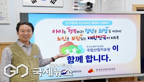 (영주=국제뉴스) 백성호 기자 = 산림청 한국산림복지진흥원(원장 남태헌) 국립산림치유원은 29일, 인구문제 해결을 위해 보건복지부 주관 '인구문제 인식 개선 릴레이 캠페인' 참여했다고 밝혔다.