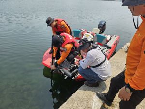 주요 훈련은 ▷안전교육 및 장비조작 ▷수색 대상물 투척과 수중카메라 영상 비교·판독 ▷대청호 일원 수중 스캔 영상 확인 등이다.