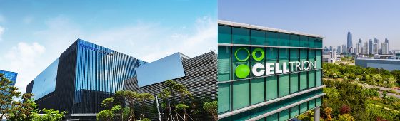 삼성바이오로직스 4공장(왼쪽)과 셀트리온 본사 전경. /사진=각 사 |