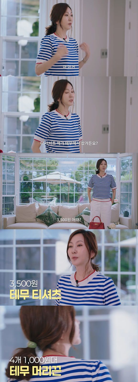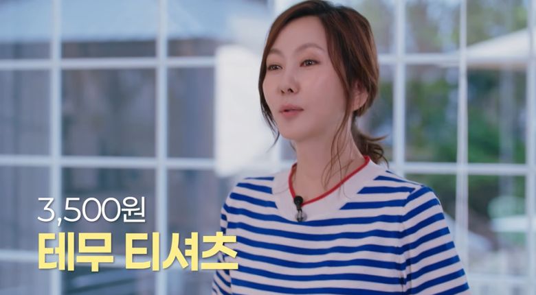 현재 입고 있는 스트라이프 티셔츠에 대해서는 "제가 테무에서 3,500원으로 샀다"며 중국계 초저가 쇼핑 플랫폼 '테무'를 언급했다.