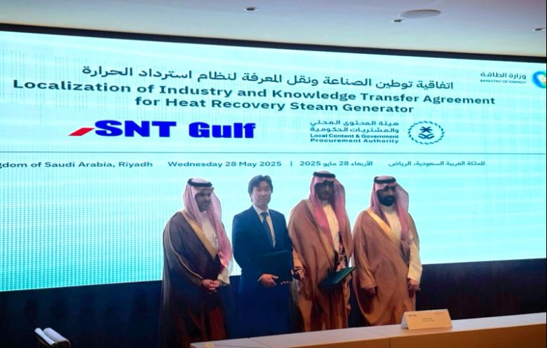 SNT에너지는 29일 자회사 SNT걸프(Gulf)가 사우디 현지화 조달청(Local Content & Government Procurement Authority)과 ‘HRSG 현지국산화 협정’을 맺었다. 체결식은 전날 사우디 리야드 에너지부 본청에서 열렸으며 아흐마드 알자흐라니 에너지부 차관보, 압둘라흐만 알세마리 현지화 조달청 대표, SNT에너지 신경인 사장 등이 참석했다.