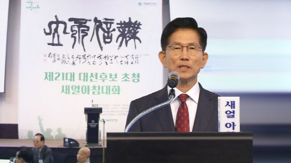 경기도지사 시절 이후 17년 만에 새얼아침대화에 나선 김문수 후보.