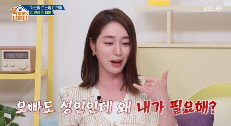 이에 이민정은 '오빠도 성인인데 왜 내가 필요해'라고 답했다고. 이민정이 "그게 들어가서 또 인증 코드 누르고 (해야 해서)"라고 하자 양세찬은 "이거 누르고, 전화해야 하고"라며 공감했다. 사진=KBS 2TV 방송화면