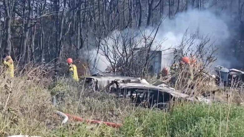 현장 주변엔 부서진 항공기 잔해가 널브러져 있고, 소방대원들이 물을 뿌리며 진화 작업을 이어갑니다.