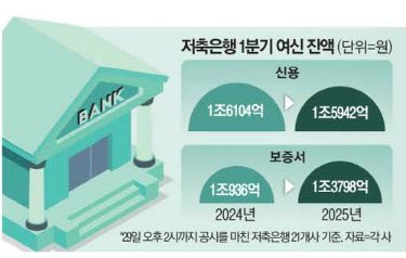 29일까지 저축은행중앙회에 1분기 실적 공시를 완료한 21개사의 지난 3월 말 기준 신용대출 잔액은 1조5942억원으로 작년 동기와 비교해 162억원 감소했다. 반면 같은 기간 보증대출은 1조936억원에서 1조3798억원으로 3000억원가량 증가했다.