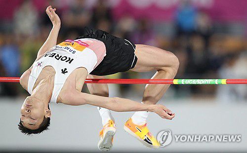 (구미=연합뉴스) 김현태 기자 = 29일 오후 경북 구미시민운동장에서 열린 2025 아시아육상경기선수권대회 남자 높이뛰기 결선에서 우상혁(용인시청)이 경기에 임하고 있다. 2025.5.29 mtkht@yna.co.kr