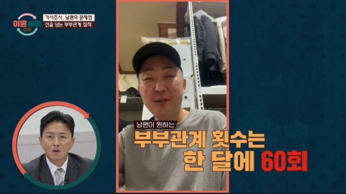 남편은 "(부부관계는) 아내가 한달에 한 10번 받아준다. 그게 만족이 안 된다. 한 달에 60회를 원한다"고 말해 모두를 놀라게 했다.