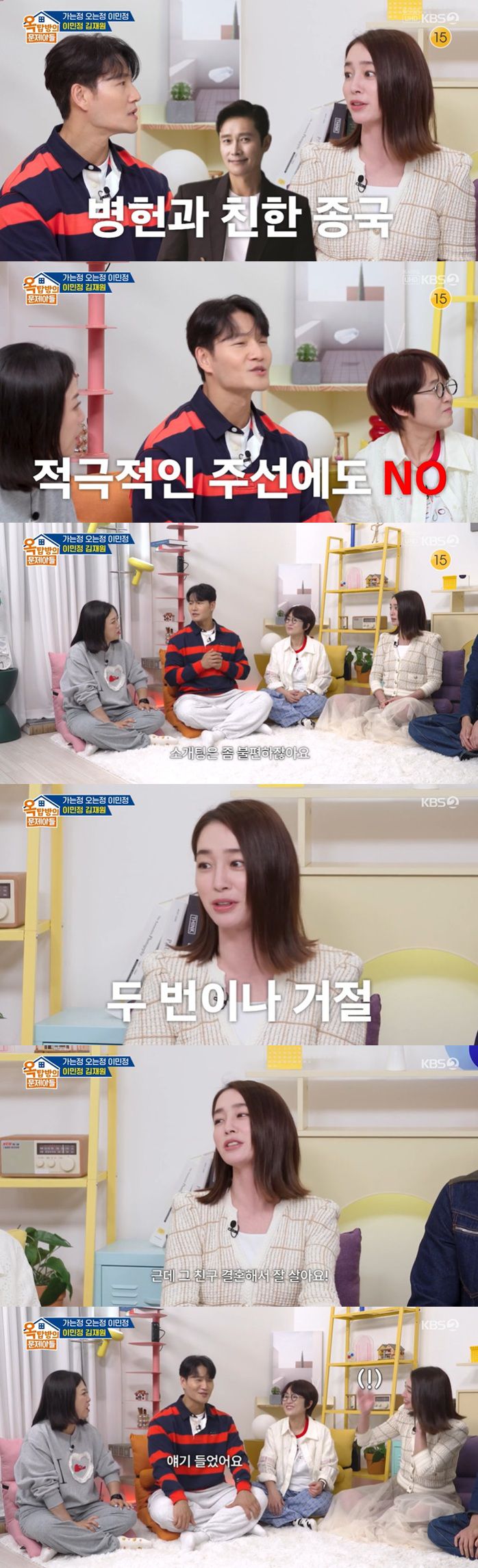 이에 김숙은 "그거 말고 뭐 해주려고 했다며"라고 말했고, 이민정은 "제가 소개팅해 드리려고 진짜로 되게 적극적으로 했는데 'NO'라고 하더라"라며 과거 김종국의 소개팅을 주선했지만 거절당했다고 말했다.