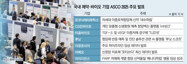 세계 최대 종양학 학술대회인 미국임상종양학회 연례학술대회(ASCO 2025)가 30일(현지시간)부터 다음 달 3일까지 열리는 가운데 한국 기업들이 참석해 주요 임상 연구 성과를 소개한다. ASCO는 미국암연구학회(AACR), 유럽종양학회(ESMO)와 함께 세계 3대 암 학회로 꼽히는 행사로, 한국 기업들이 글로벌 산·학계의 이목을 끌 수 있을지 주목된다.