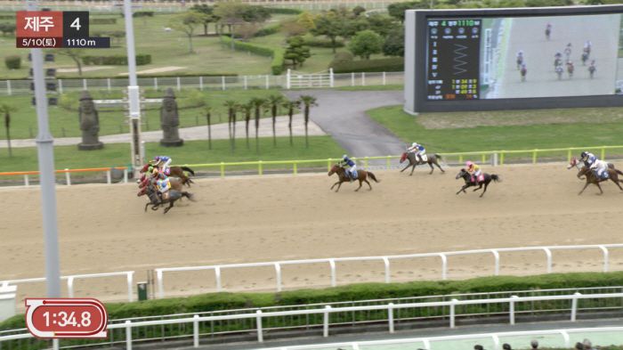 그 치열함을 여실히 보여준 경주가 지난 10일 펼쳐진 제주 4경주다. '탐라후예', '무림태자', '천지여왕' 그리고 '원평천하'까지. 무림고수를 연상케 하는 화려한 이름을 지닌 제주마들이 박빙의 접전을 펼친 가운데 4두가 코-코-코차로 들어오는 진기한 장면이 연출됐다. 1위는 단승 배당률 43.4배의 다크호스이자 9세의 노익장 '탐라후예'가 차지했다.