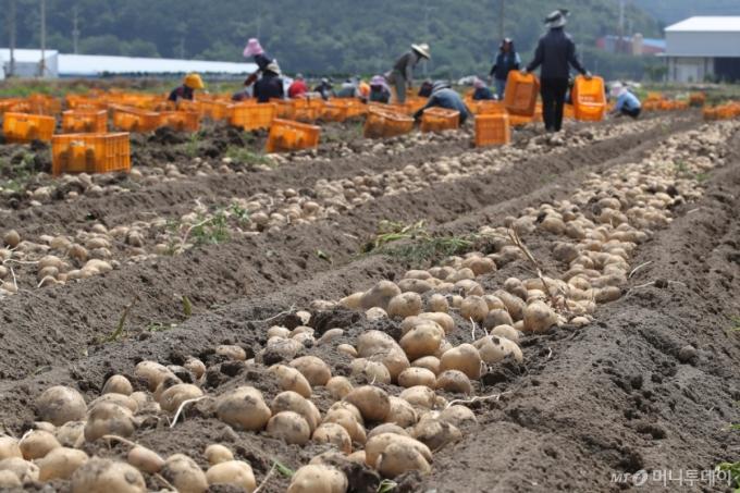 2024년 초여름 경북 고령군 개진면 한 감자밭에서 농부들이 감자를 수확하고 있다. /사진=뉴스1