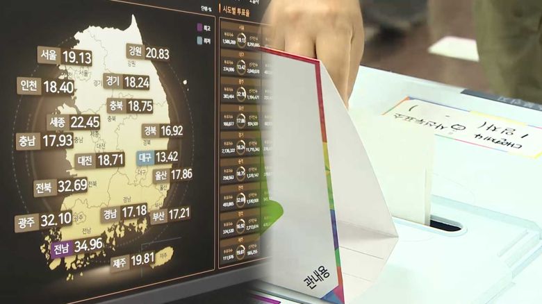 사전투표율이 가장 낮은 곳은 대구로, 13.97%로 집계됐습니다, 서울은 19.91%입니다.