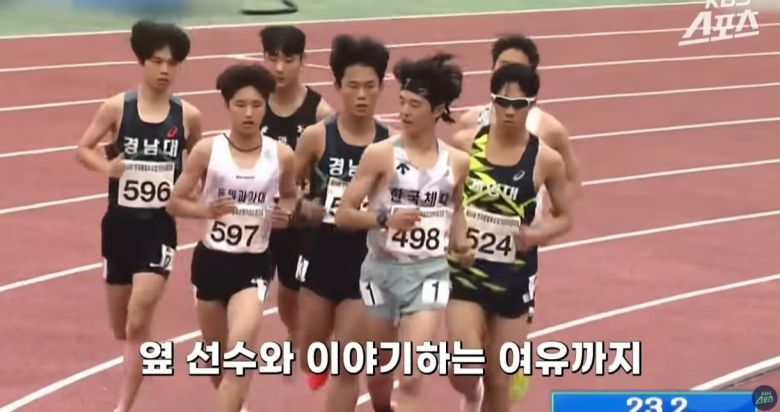 지난 21일 경남 밀양에서 열린 제54회 전국종별육상경기선수권대회 남자 대학부 3000m 장애물 결승 경기 도중 한 선수가 옆을 돌아보며 이야기하고 있다. /KBS 스포츠 |