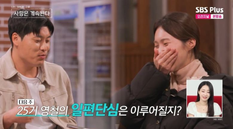 29일 방송된 ENA, SBS플러스 예능 프로그램 '나는 솔로 그 후 사랑은 계속된다'에서는 25기 영철이 17기 옥순과 데이트를 하는 장면이 그려졌다.