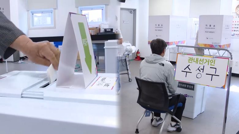 네, 저는 지금 대구 수성구 범어2동 사전투표소에 나와 있습니다.
