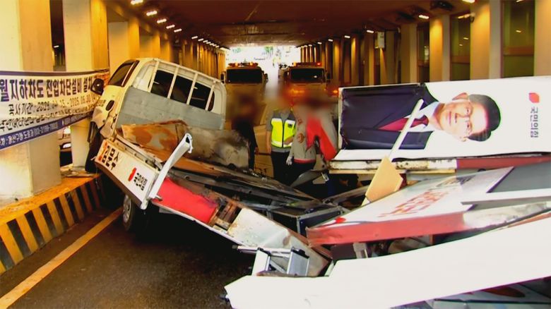 경찰은 차량에 실린 유세용 광고판이 3.6m 높이의 지하차도를 지나다 상부와 충돌해 전복된 것으로 보고, 정확한 사고 경위를 조사하고 있습니다.