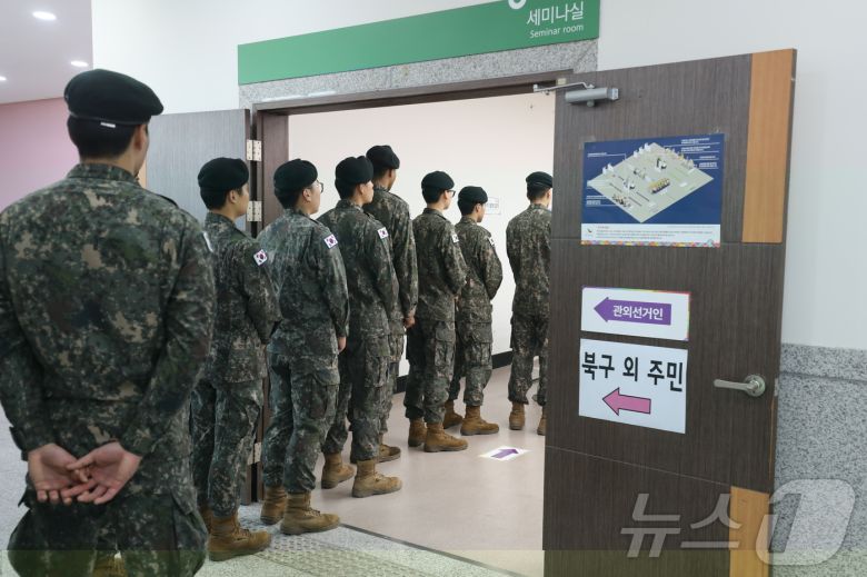 투표장을 찾은 시민들은 장병들을 향해 "나라도 지키고, 투표도 참여하고 너무 멋있다"며 대견하다는 목소리를 건넸다.