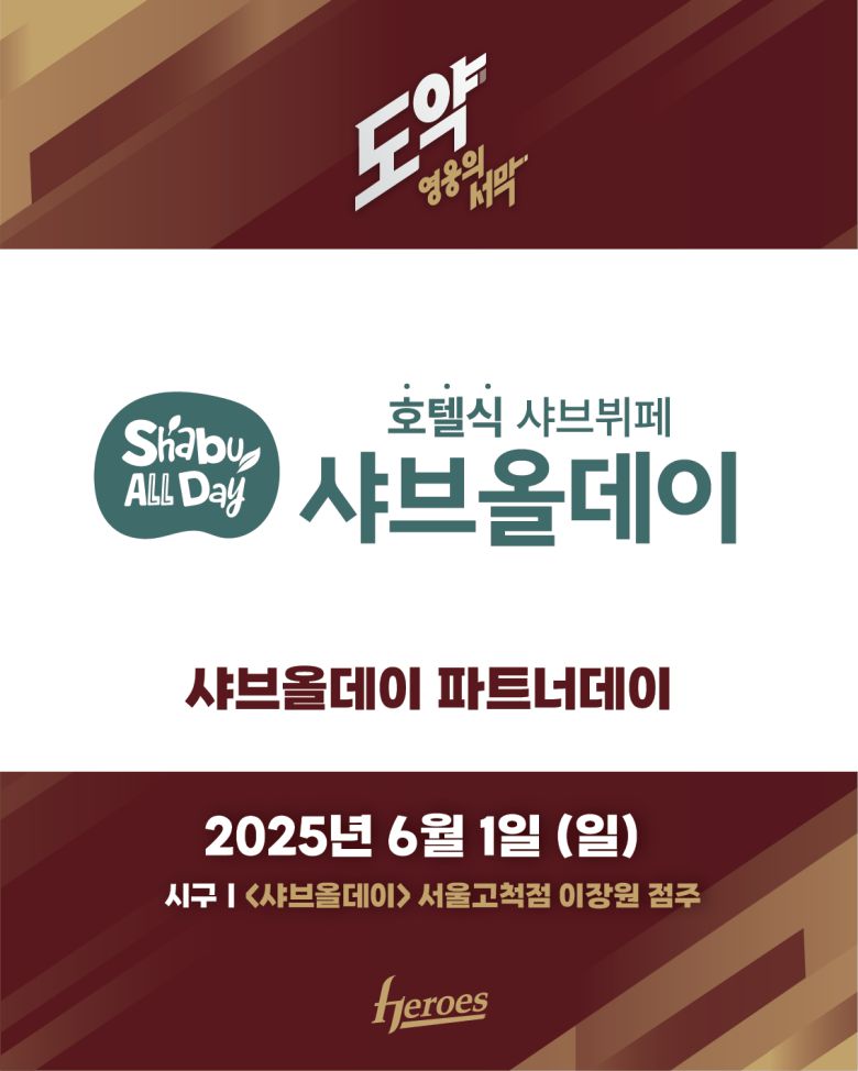 프로야구 키움히어로즈(대표이사 위재민)가 6월 1일 서울 고척스카이돔에서 열리는 두산과의 경기에 ‘샤브올데이 파트너데이’ 행사를 진행한다.