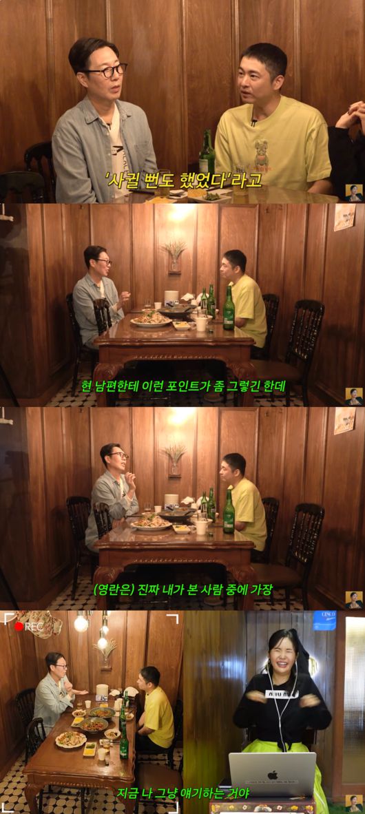 김영철은 어색함에 어쩔 줄 몰라 했고 장영란은 왜 이렇게 어색해 하냐고 물었다. 이에 김영철은 “전 여친 남편 만난 것 같다”는 발언을 했다.