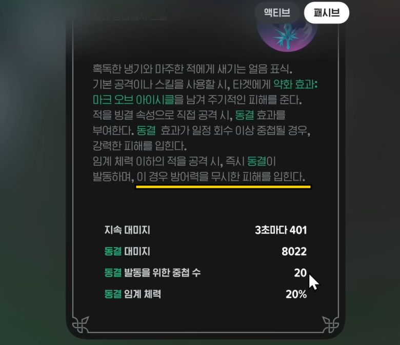반대로 소외받던 빙결술사는 버프를 받았다. 이제는 단단한 탱킹력은 물론 상당히 높은 대미지를 뽐내는 딜탱이 됐다. 패시브 수정을 포함해 스킬 조정, 버그 수정, 속도 및 재사용 대기시간이 모두 상향돼 체급 자체가 크게 올랐다.