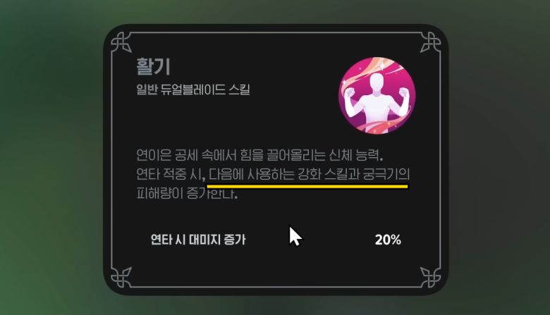 듀얼 블레이드 역시 '활기' 패시브가 연타 시 다음 강타 대미지를 증가시키는 대신, 연타 시 다음 강화 스킬 및 궁극기 대미지를 증가하는 방식으로 바뀌며 전체적인 DPS가 상승했다. 강화 5스킬이 핵심이었던 만큼 유의미한 변화다.