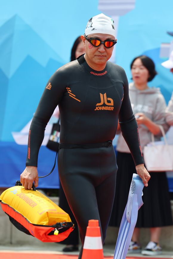 오 시장은 전날에도 배를 타고 잠실 수중보 남북단을 돌며 채수(採水)해 수질을 점검한 바 있다. 이날은 직접 한강에 들어가 잠실 수중보 남단∼뚝섬수상안전교육센터에 이르는 1㎞ 구간을 수영하면서 안전성을 검증했다. 시는 행사 전날까지 매일 수질 점검을 진행했다.
