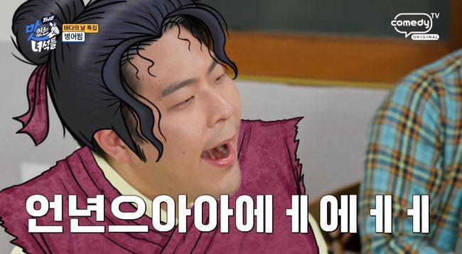 본격적인 먹방을 위해 병어찜 식당에 방문한 멤버들은 배우 장혁과 만화가 허영만 사인을 발견하고 반가움을 드러낸다. 이에 황제성은 김해준에게 장혁 성대모사 개인기를 요청하고, 김해준은 2% 부족한 ‘추노’ 대길이로 변신해 “언년아”를 외친다.