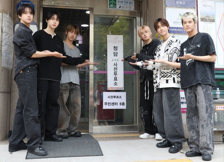 그룹 뉴비트(NEWBEAT, 박민석·김태양·최서현·홍민성·조윤후·전여여정)는 30일 오전 10시께 서울 강남구 청담동 주민센터에 마련된 사전투표소에서 제21대 대통령선거 사전투표를 마쳤다.