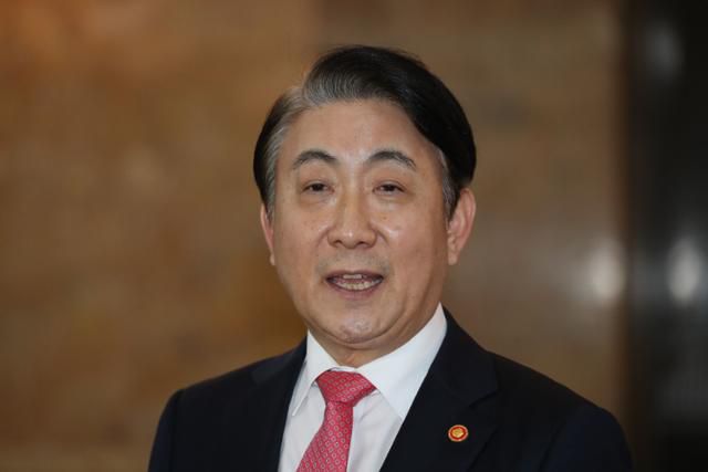 이동관 전 방송통신위원장이 2023년 11월 9일 서울 여의도 국회 로텐더홀에서 취재진 질문에 답변하고 있다. 고영권 기자