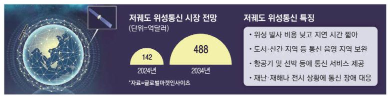 저궤도 위성통신은 일반 인공위성보다 낮은 궤도의 위성들과 지상 안테나를 활용해 통신을 제공하는 기술이다. 일반 인공위성에 비해 발사 비용이 낮고 통신 지연 시간이 짧으며 안테나만 설치하면 도서·산간 지역 등에서도 인터넷 연결이 가능하기에 통신 음영 지역을 해소할 수 있다는 것이 장점이다. 지상 인프라스트럭처가 부족한 국가나 국토 면적이 넓은 국가에서 유용하다.