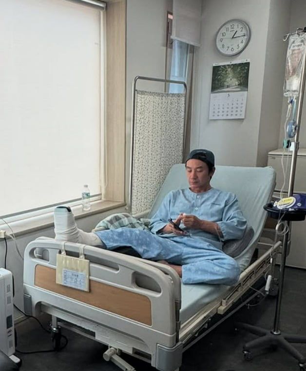 (MHN 김예품 인턴기자) 배우 엄태웅이 다리 부상으로 병원에서 치료 중인 근황을 전했다.