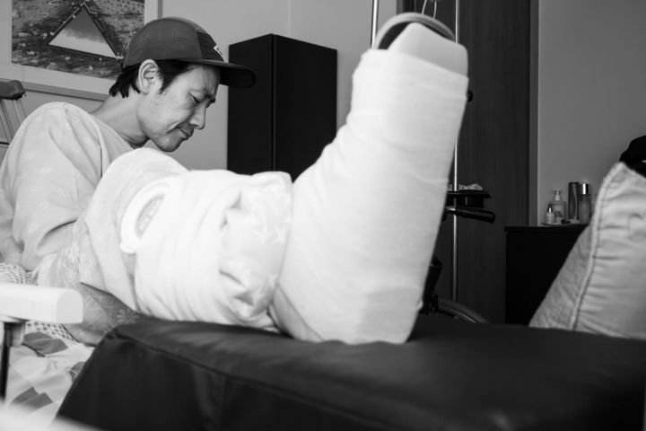 30일 엄태웅은 자신의 SNS에 병원 침대에 누워 있는 사진을 올렸다. 사진 속 한쪽 다리에 깁스를 한 채 병원복을 입고 모자를 눌러쓴 모습에 링거와 목발도 보여 부상의 정도를 짐작하게 했다.