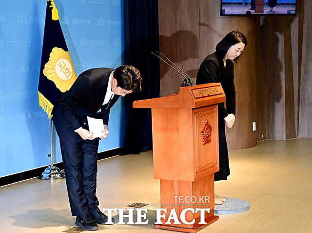 이어 "대한민국의 역사를 50년 뒤로 후퇴시키는 반민주 폭거"라며 "저를 제명하는 것은 물론 언론사 기자들에게 보도지침을 만들어 겁박하고, 이른바 민주파출소를 통해 카톡 검열, 유튜브 검열까지 하고 있다"고 주장했다.