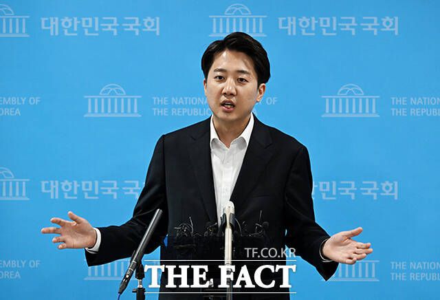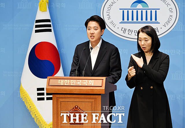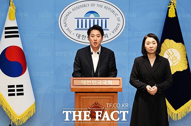 [더팩트ㅣ국회=배정한 기자] 이준석 개혁신당 대선 후보가 30일 오후 서울 여의도 국회 소통관에서 긴급 기자회견을 열고 입장을 밝히고 있다.