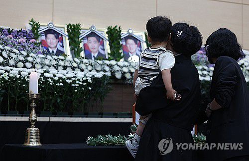 아빠의 죽음을 아는지 모르는지 한손에는 장난감 자동차를 꼭 쥐고 있던 아이는 외할머니 품에 안겨 말없이 눈물방울만 떨궜다.