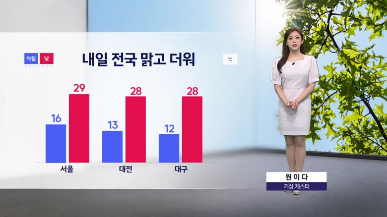 서울 낮 기온 29도, 대전 28도로 오늘보다 조금 높겠고요.