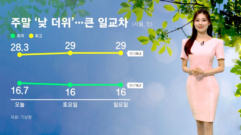 어느덧 5월의 마지막 날을 앞두고 있습니다. 내일(31일)도 서울의 낮 기온이 29도로 오늘만큼 기온이 오르겠고요. 6월이 시작되는 일요일까지도 더위의 기세가 이어지겠는데요. 다만, 일교차가 크게 벌어지면서 아침저녁에는 여름 옷차림이 서늘하게 느껴질 수 있겠습니다.