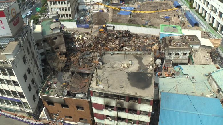 새까맣게 그을리고 무너져 내린 건물들 사이로 소방관과 경찰관들이 분주하게 움직입니다.
